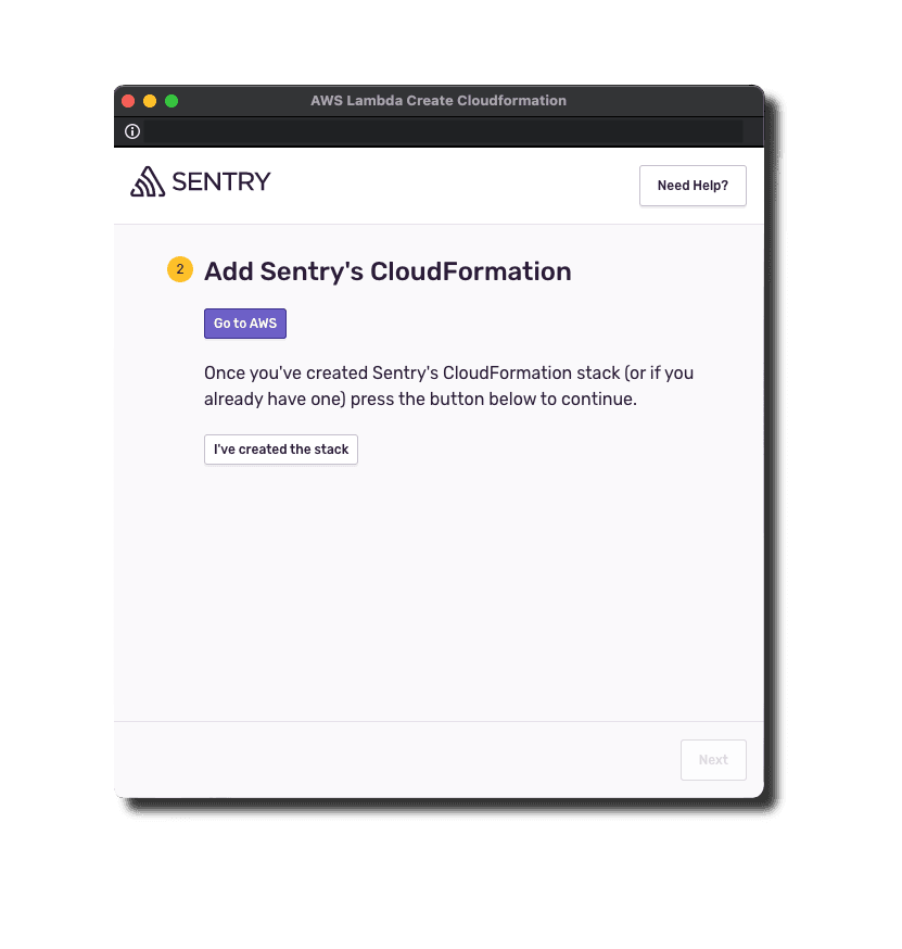 Wait for the stack to be created. Once it's confirmed and the status changes to Create Complete, click I've created the stack in the Sentry popup.